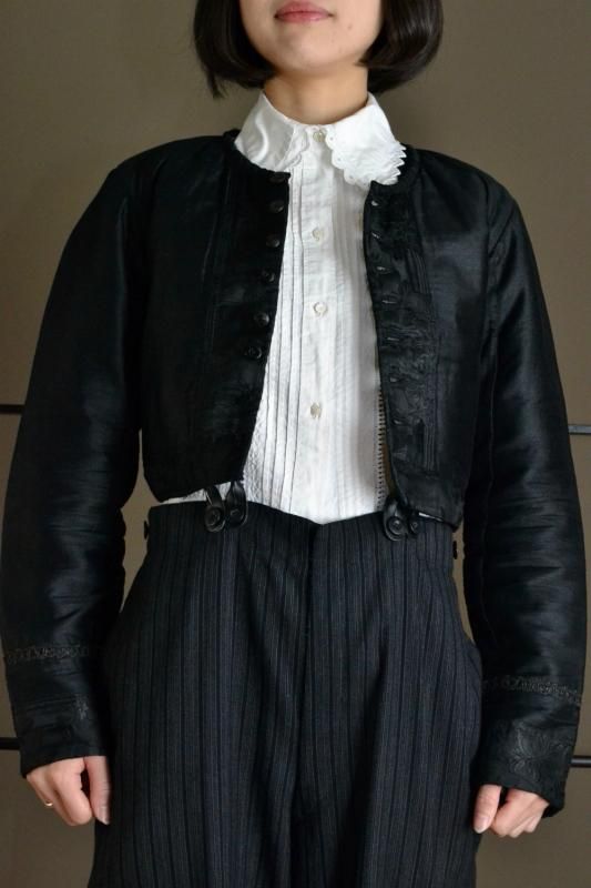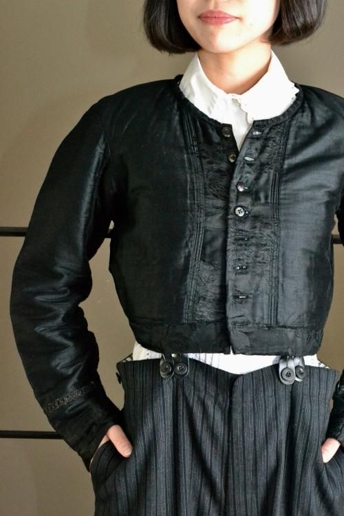 さり気なく刺繍が施されたシルク生地の光沢が美しい一点