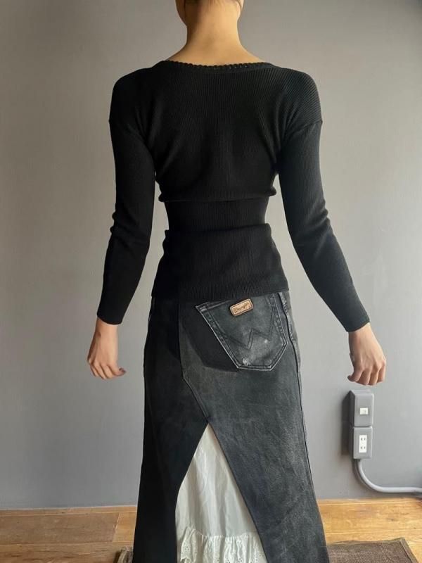 ウエストで編み地が切り替えられた